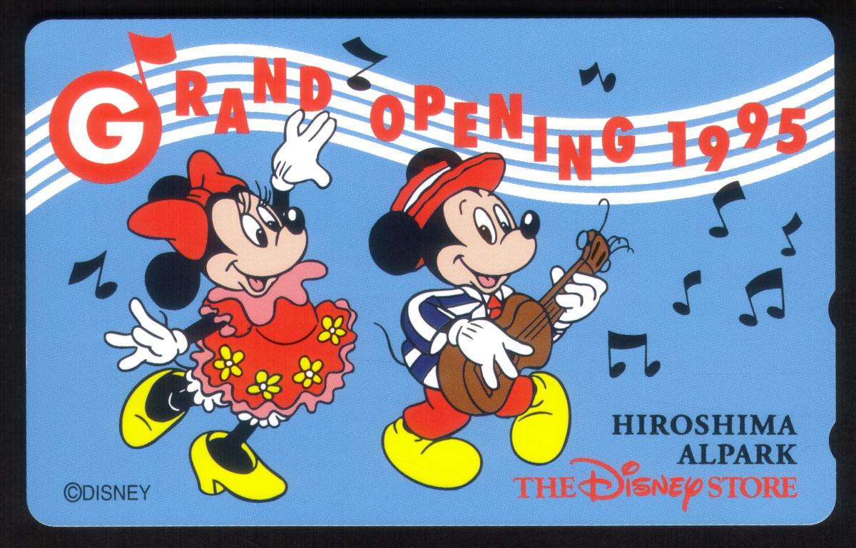 This card is a collectible Disney item from Japan, combining cultural significance with beloved animated characters Mickey and Minnie Mouse. It reflects the special occasion of the Disney Store opening at a specific location in Hiroshima, emphasizing its role as a commemorative piece for fans and collectors of Disney memorabilia.