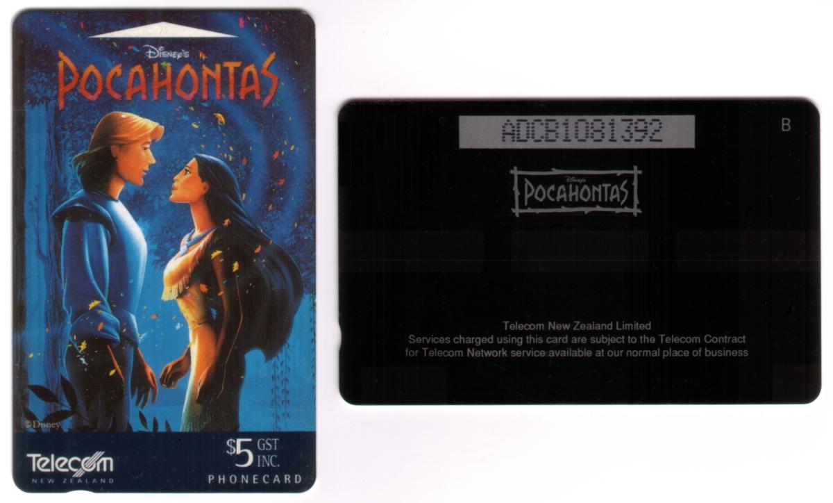 The card is identified as originating from New Zealand, which is printed on the card itself. This single card highlights the iconic pairing of Pocahontas and John Smith, showcasing Disney’s animation style and character design distinctly.