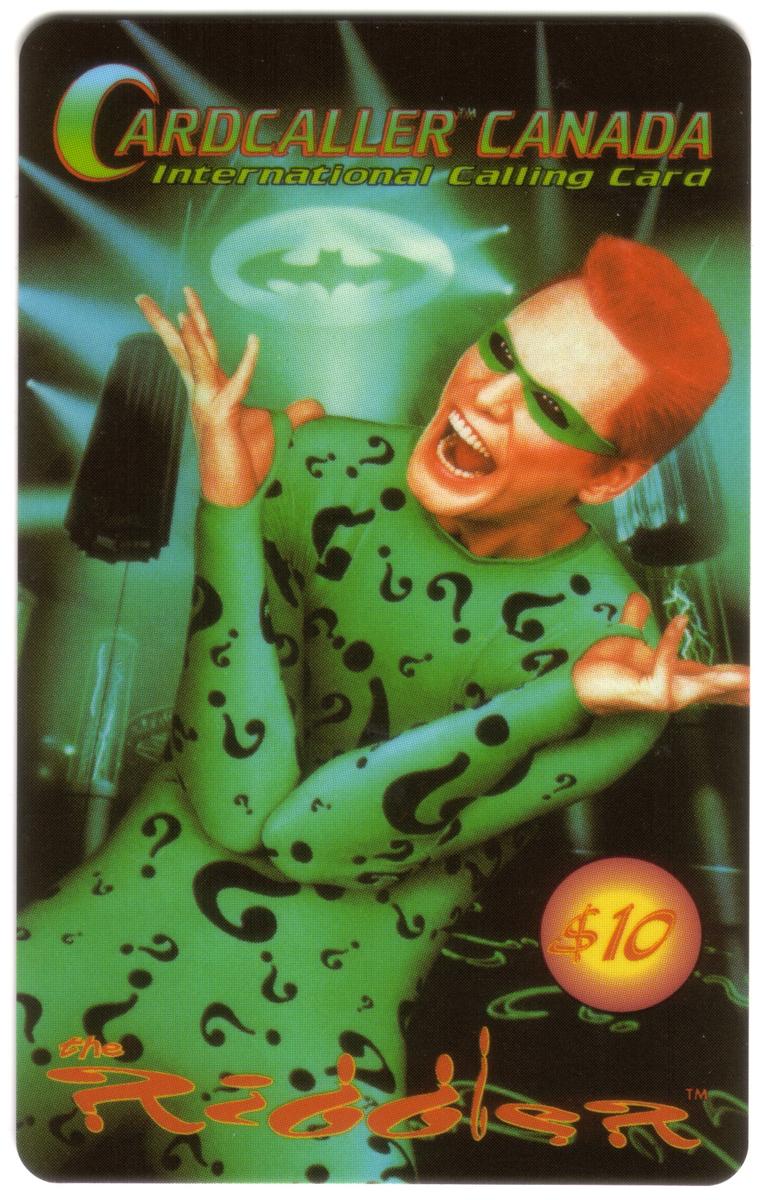 This collectible set features six presentation cards from the "Batman Forever" movie series issued in Toronto, Canada, in June 1995. The cards highlight key characters from the film, including Batman, Robin, Dr. Chase Meridian, Two-Face, and the Riddler. Each card prominently displays highly detailed photographic images of these characters, reflecting their iconic appearances in the Warner Bros. feature film “Batman Forever,” a DC Comics adaptation.