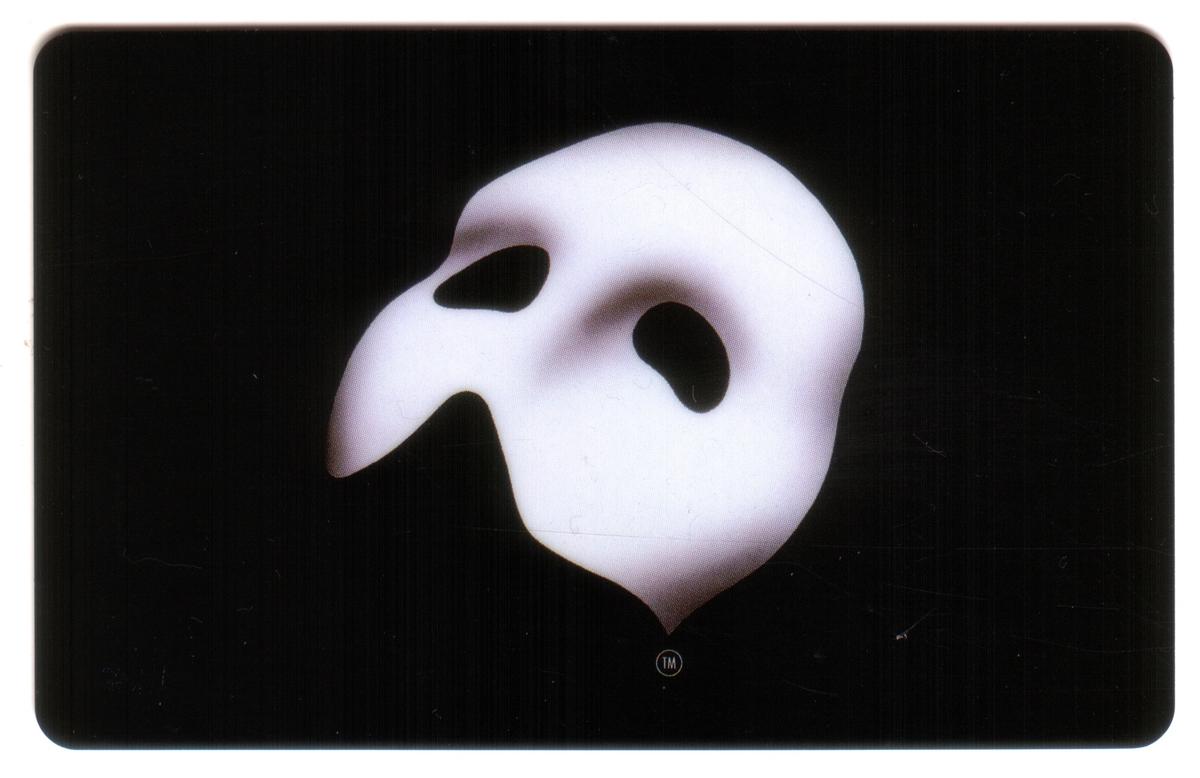 This collectible set includes three sealed phone cards issued by Hongkong Telecom featuring imagery related to "The Phantom of the Opera" theatrical production. Each card displays a prominent mask, iconic to the story, symbolizing the Phantom’s persona. The mask is white and shaped to cover the right half of a face, set against backgrounds that evoke theatrical themes. The imagery is associated directly with the famous musical and reflects its connection to Hong Kong theater.