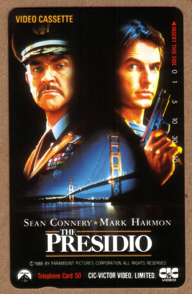 This item is a collectible promotional card tied directly to *The Presidio* movie and highlights both Sean Connery’s involvement and the film’s release details. The promotional nature of the card is reinforced by the official logos and precise referencing to the associated studios and video distribution company.