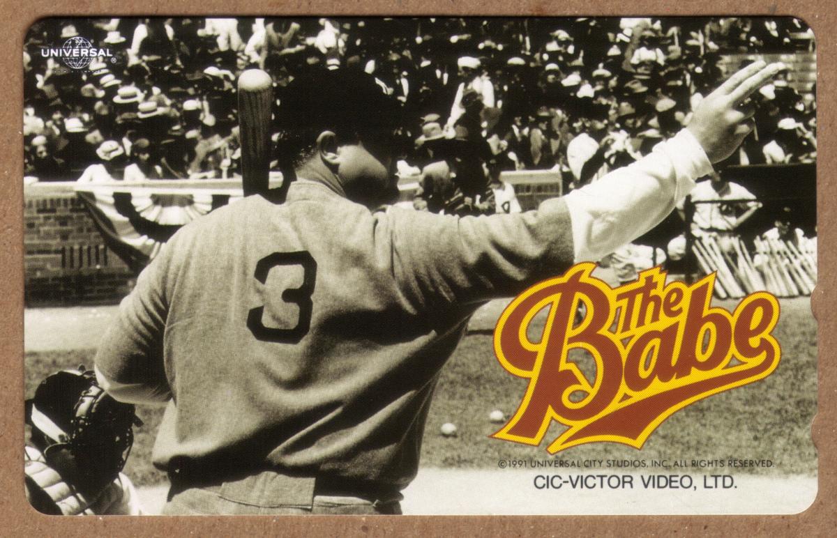 This collectible comes from Japan and relates to baseball, specifically highlighting Babe Ruth. The card is in mint condition and was released by CIC-Victor Video, Ltd. in conjunction with Universal City Studios.