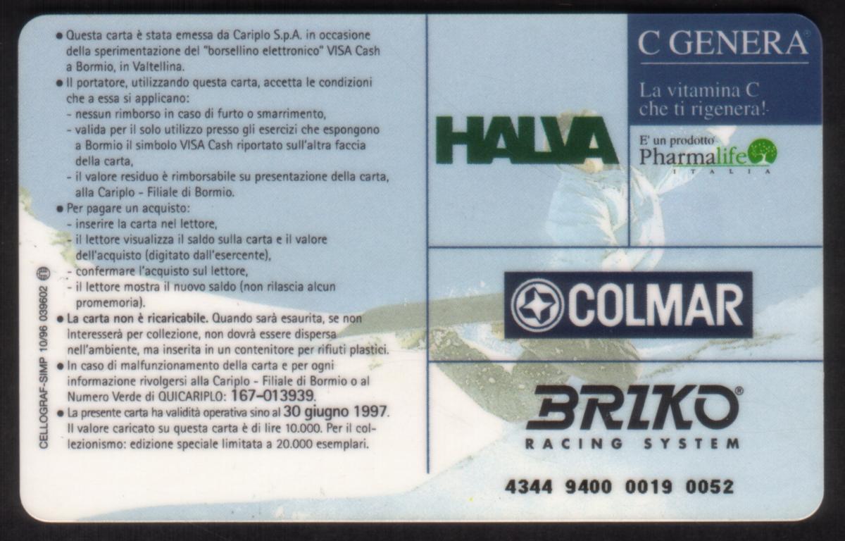 Keywords: F90N, svc, stored value, moneta contante, bormio, montagna di lombardia, halva, c genera, pharmalife, colmar, briko racing system, sports: snow skiing, cellograf simp, bankcard, Italy - Cariplo Bank