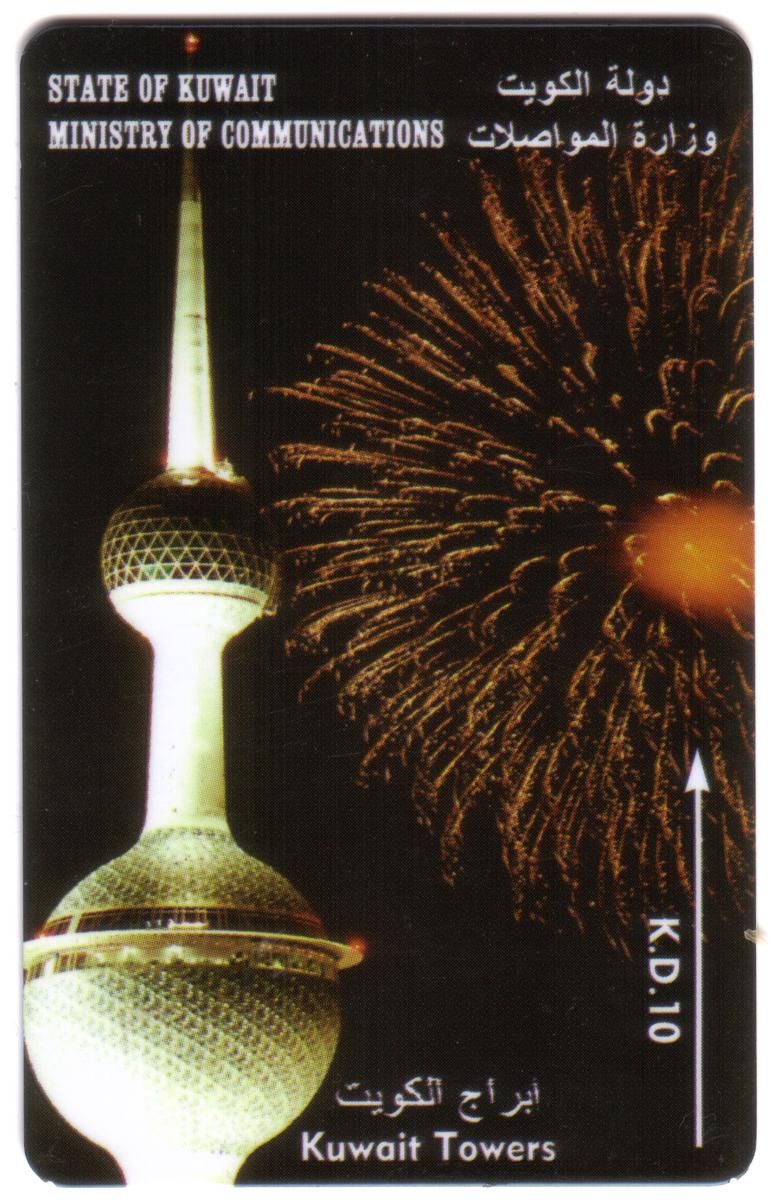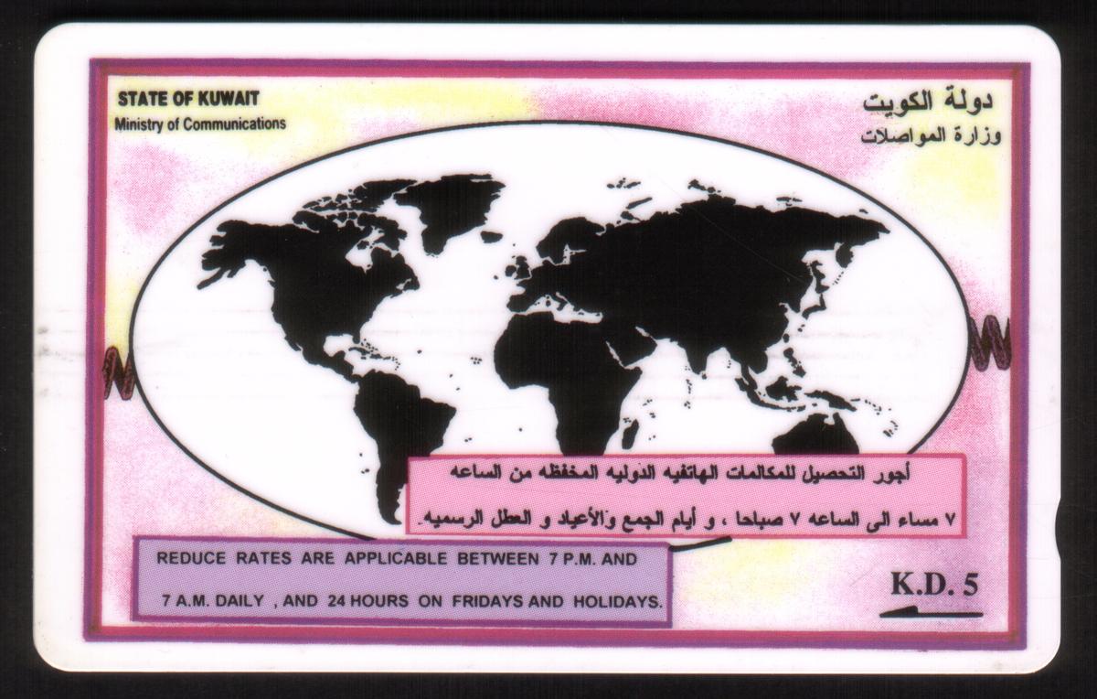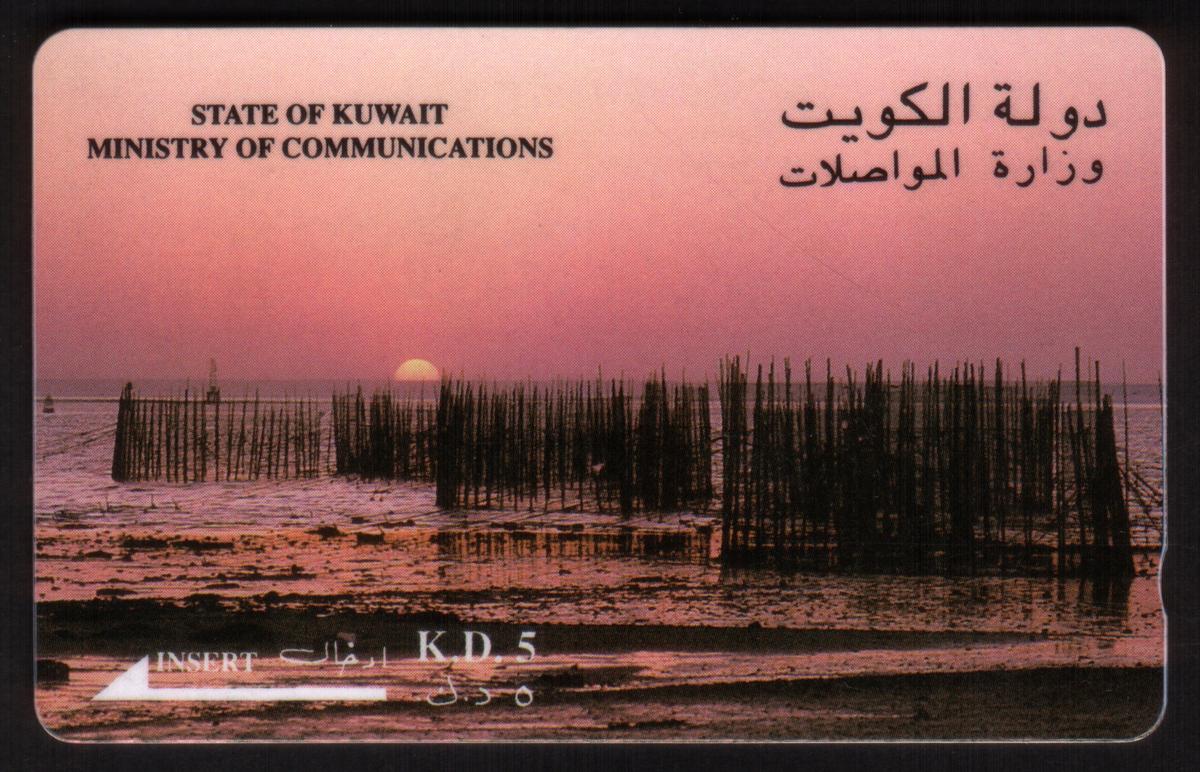 All cards include bilingual text in Arabic and English identifying the issuing authority as the State of Kuwait, Ministry of Communications. The cards are magnetic and stored value phone cards used for telecommunications.