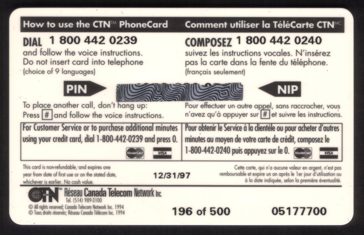Since we have the world's largest inventory of USA phonecards for collectors, you will not necessarily receive the identical serial/batch/PIN number that we have scanned/pictured.