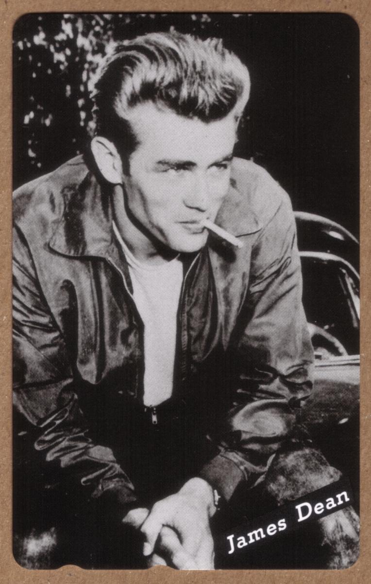James Dean's name appears in white text in the bottom right corner of the card. The overall style and pose capture the famous 1950s American cultural icon known for his brooding and rebellious persona.