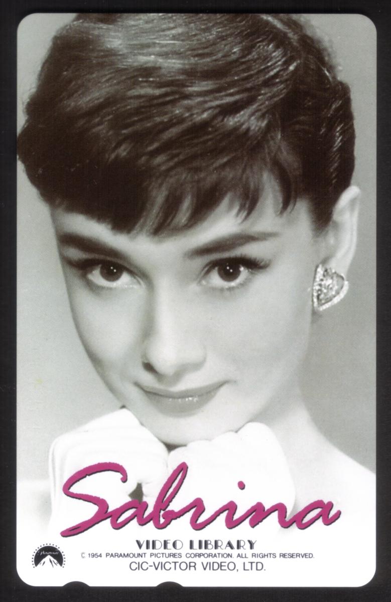 This collectible phone card from Japan features a promotional image related to the 1954 movie "Sabrina." The card prominently displays Audrey Hepburn, who stars in the film, making it a valuable item for fans and collectors of classic cinema memorabilia. The design is clean and focused, presenting Audrey Hepburn in a polished portrait style, highlighting her as the central figure linked to the movie promotion.