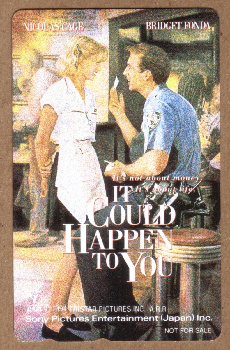 Overall, this is a Japanese movie promotional card showcasing *It Could Happen to You*. It features the key actors Nicolas Cage and Bridget Fonda with the branding of TriStar Pictures and Sony Pictures clearly visible on the front.