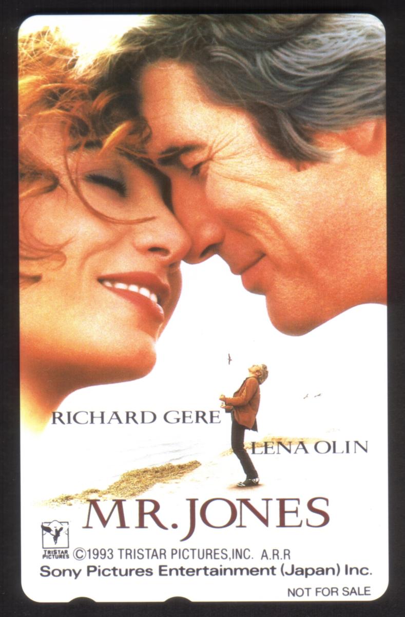 The card originates from Japan, which is confirmed by the presence of Japanese text near the bottom left corner. The text includes "J90N" and other information related to the card’s issue in that country. The promotional nature of the card is further underscored by the clear references to the movie *Mr. Jones* just above the portraits of Gere and Olin.