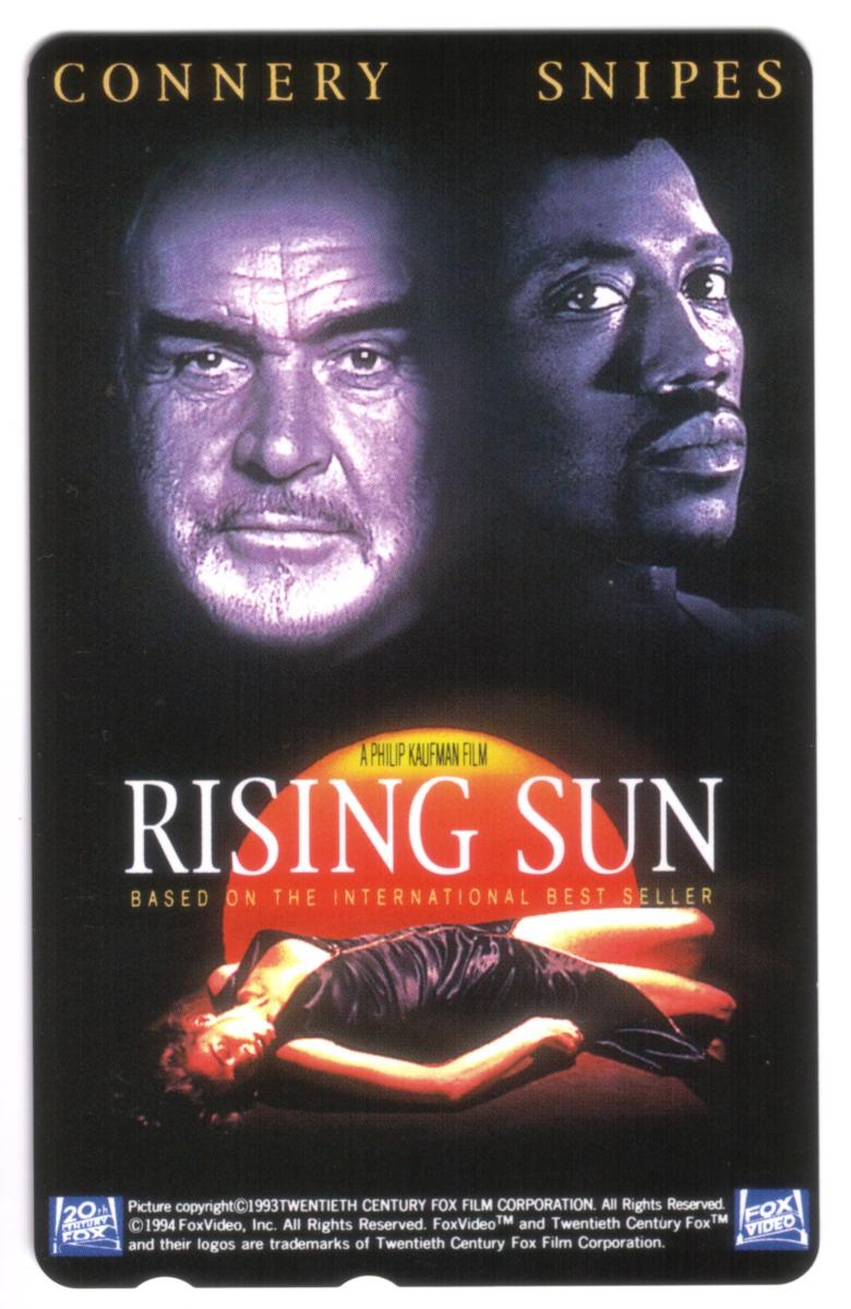 This collectible card features a movie promotional design for the film "Rising Sun." The card prominently displays close-up portraits of Sean Connery on the left and Wesley Snipes on the right, both looking forward. Connery’s face is well-lit, showing detailed facial features, while Snipes is shown with a serious expression against a dark background.