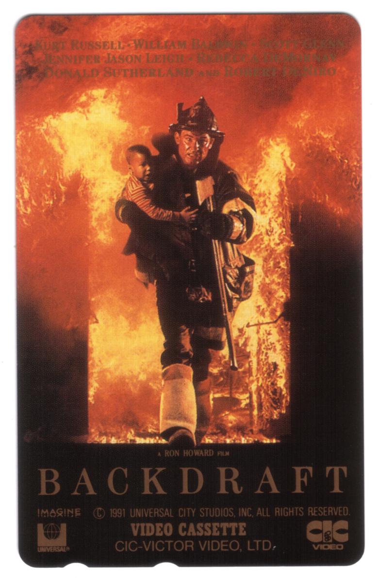 This phone card is an official movie promo collectible issued in Japan, commemorating the *Backdraft* film and its release. The combination of the Universal City Studios logo, the film title, and the Japanese origin make it a unique and desirable item for collectors of movie-themed phone cards.