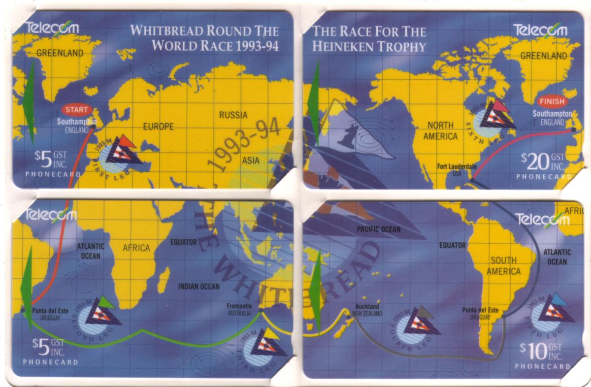 No additional characters or detailed logos appear on the card other than the mentions related to the yacht race and the Heineken Trophy. The design is professional and precise, emphasizing the sporting event and national pride connected to New Zealand's participation in the 1994 Whitbread Round The World Yacht Race.