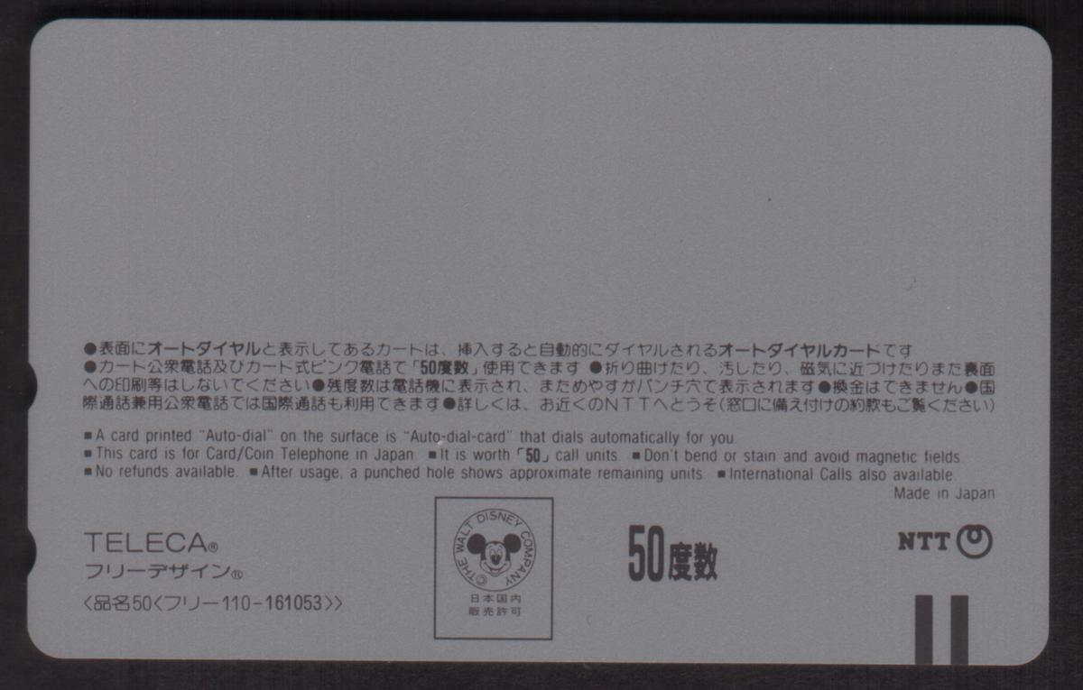 This phone card combines Disney’s iconic characters with Japanese Airlines, creating a collectible item that reflects a unique collaboration between Disney and Japan’s aviation sector. The lively illustrations and clear photographic presentation emphasize Minnie and Mickey’s travel theme, making it a distinctive piece for collectors and enthusiasts.