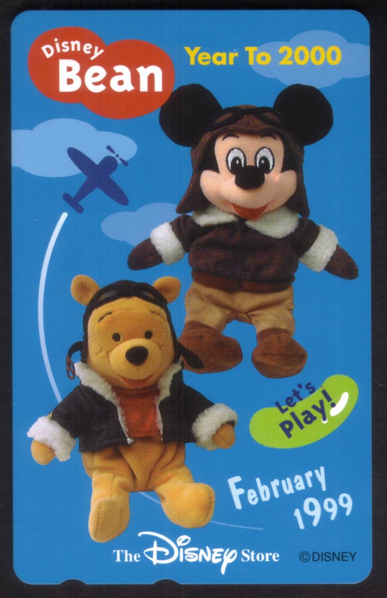 The overall design highlights the Disney Bean collection theme leading up to the year 2000, emphasizing a playful aviation motif with well-known Disney characters Mickey Mouse and Winnie the Pooh dressed as pilots. The card is in mint condition with no holes and maintains bright, vivid colors and clear printing.