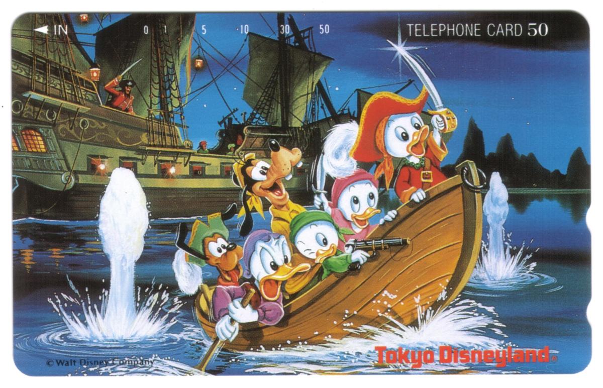 The telephone card is a vibrant and engaging collectible that captures a playful pirate adventure with well-known Disney characters, making it a unique item linked to Tokyo Disneyland in Japan.