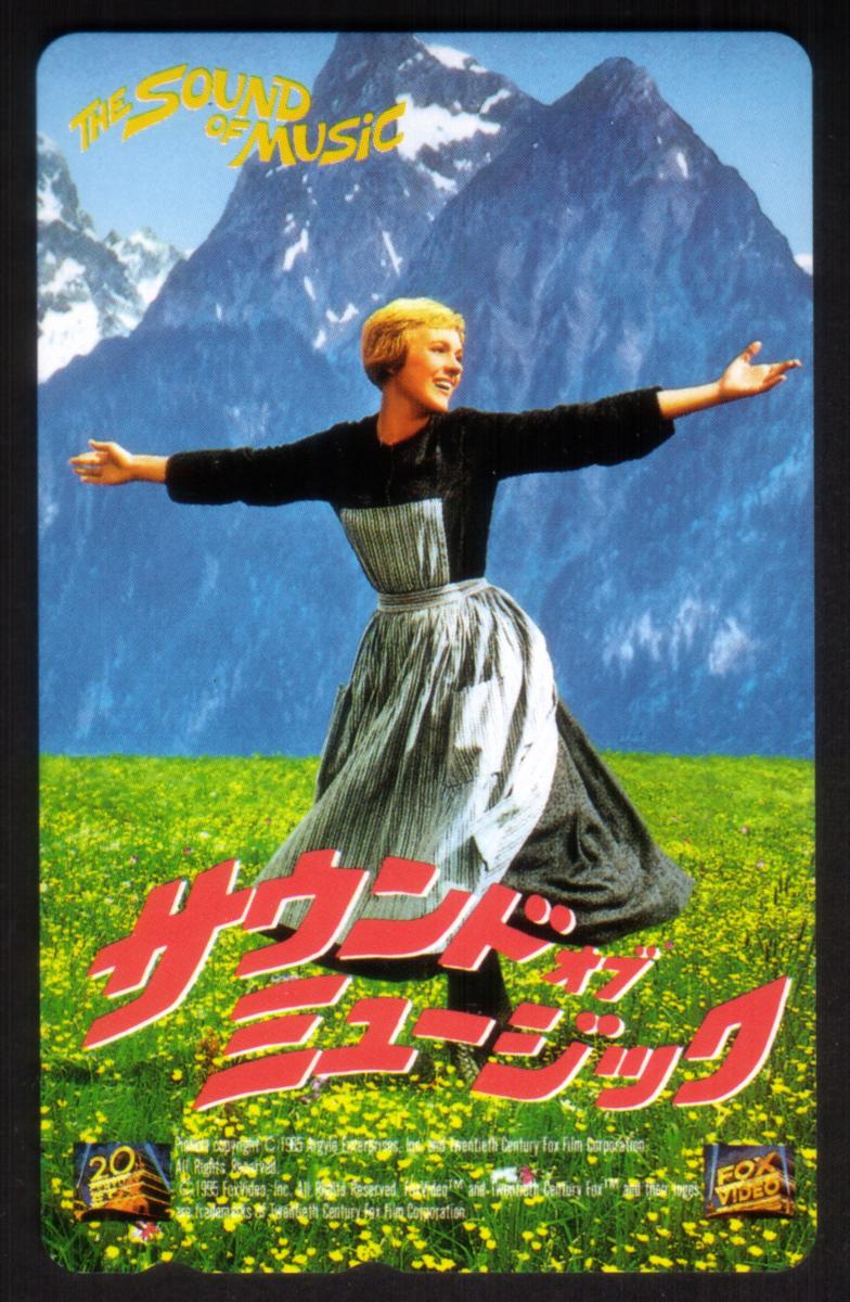 "The Sound of Music" title appears in bright yellow text at the top left corner of the card. Below Maria, large red Japanese characters prominently display the film’s title, adding a distinctive visual element that identifies this edition as Japanese. This collectible card was issued in Japan in conjunction with the Twentieth Century Fox Video promotion for "The Sound of Music" on videocassette.