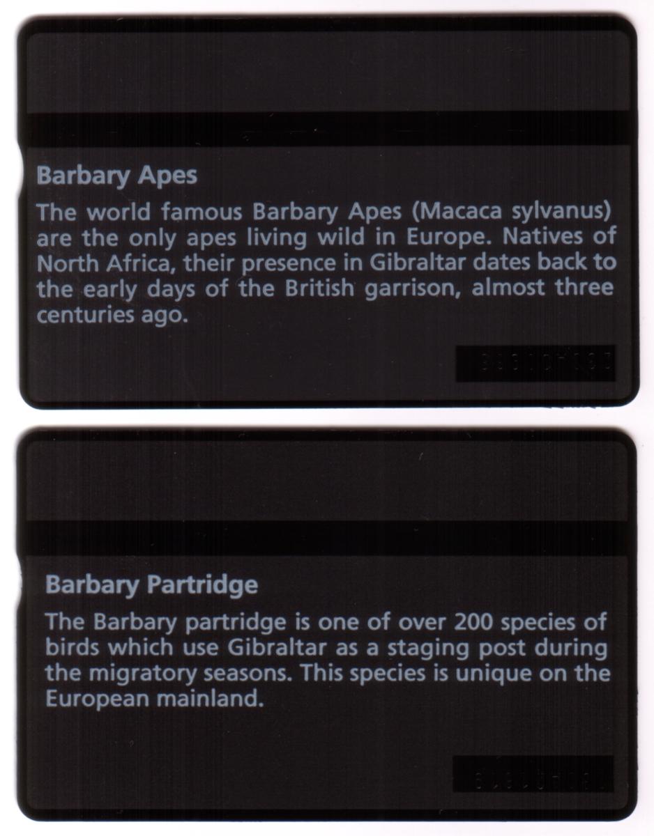 The phone cards are collectible items designed to commemorate these distinctive wildlife species of Gibraltar. The artwork and photography bring attention to the Barbary Apes and Barbary Partridge, underlining their importance in Gibraltar’s natural heritage.