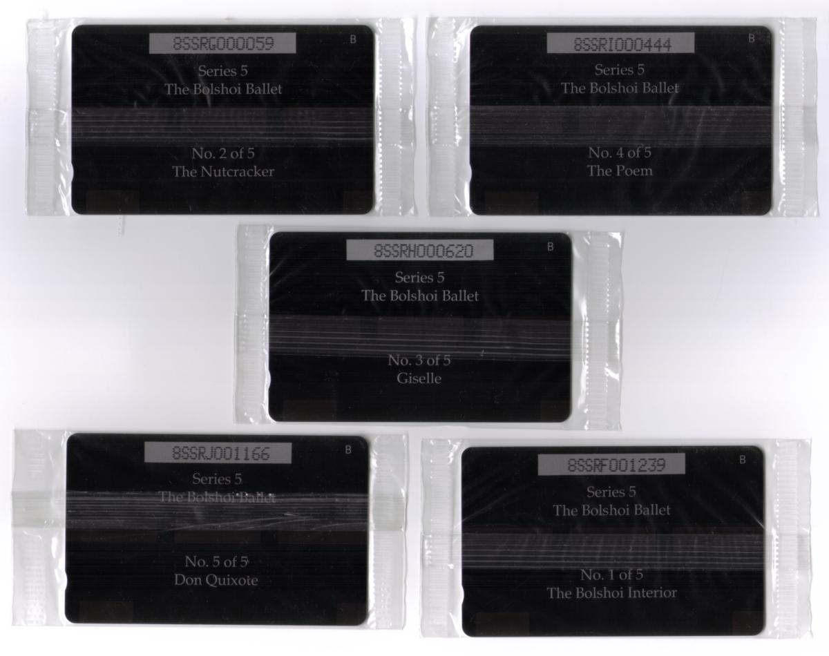 Overall, the card celebrates the performing arts with a focus on the Bolshoi Ballet’s renowned productions. It is sealed and part of a set, making it a collectible item for enthusiasts of ballet and Russian cultural heritage.