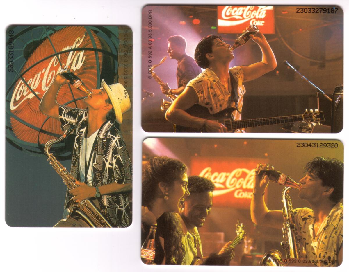 Keywords: F90N, coke bottles, chip card, coca cola, stored value, smart card, svc, music, musician, musicians, sax, saxophone, set of 3, Germany
