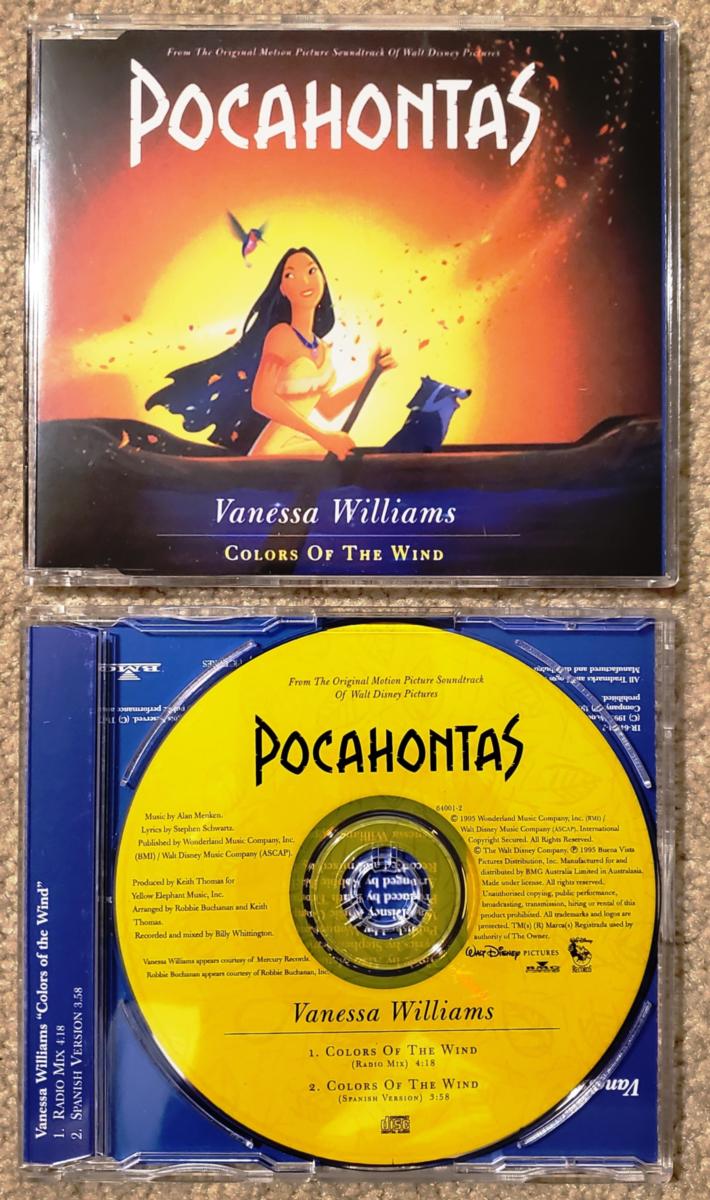 Vanessa Williams is associated with Pocahontas through the prominent song "Colors of the Wind," although her name does not appear directly on the front of the card. This card is an official Disney collectible from New Zealand, commemorating the animated film and its memorable characters.