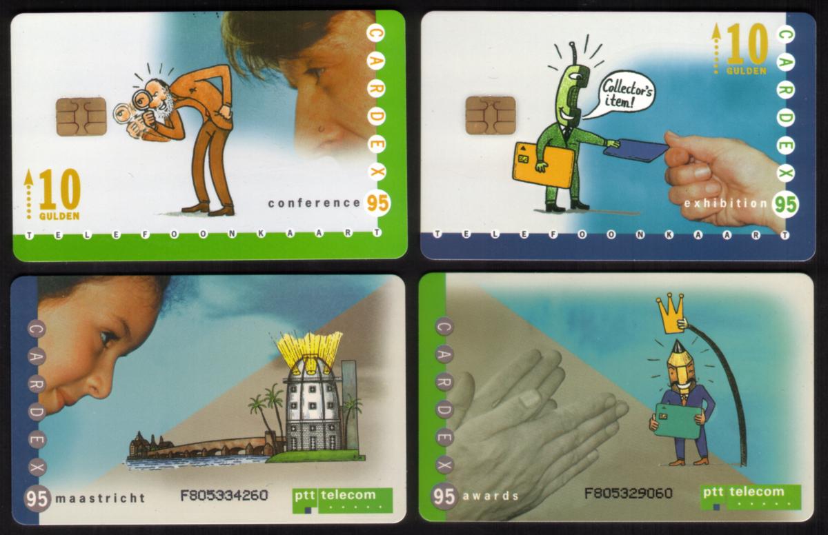 This collectible chip card is an artistic stored value smart card issued for the CardEx 1995 Conference & Exhibition held in Maastricht, Netherlands. The front features vibrant imagery connected to the event, with the CardEx '95 logo prominently displayed. The card includes text that reads "CARD EX 95," "MAASTRICHT - NETHERLANDS," and "EXHIBITION," indicating its association with the international exposition that took place in the Netherlands.
