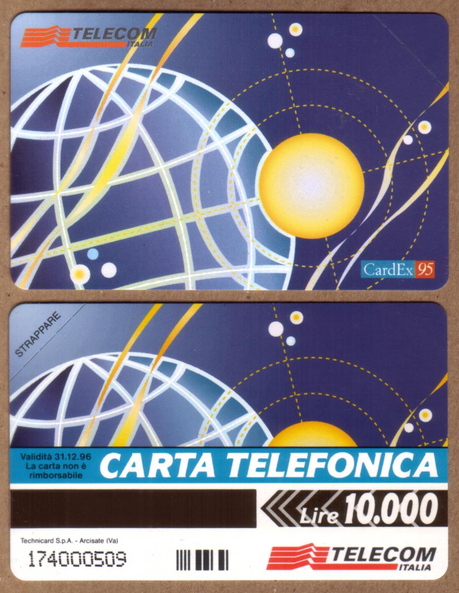 Issued at the CardEx 1995 event, the card serves as both a functional stored value card and a collectible piece representing the era's developments in smart card technology and international telecom exhibitions. Its design and text position it as a memento from Italy for attendees or collectors interested in smart card history and international conferences.