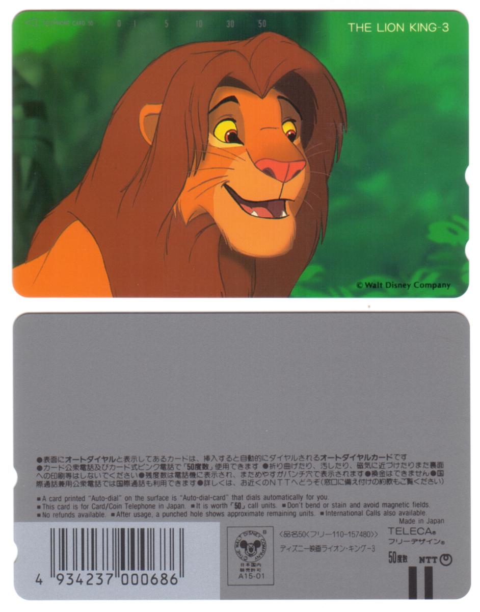 Overall, the card appears in mint condition with a smooth surface and no holes or visible damage. The artwork and typography are crisp and clean, enhancing the collectible value of this official Disney Lion King card from Japan.