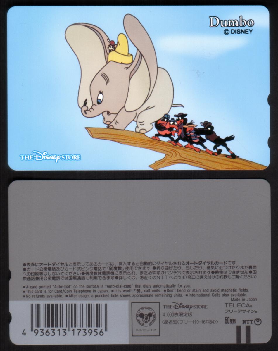 This item is associated with the SKU-91353 and the code J90N. The overall presentation highlights Dumbo as a beloved Disney figure, showcased in a vibrant and cheerful design. The card is intended for collectors interested in Disney characters and Japanese exclusive releases.