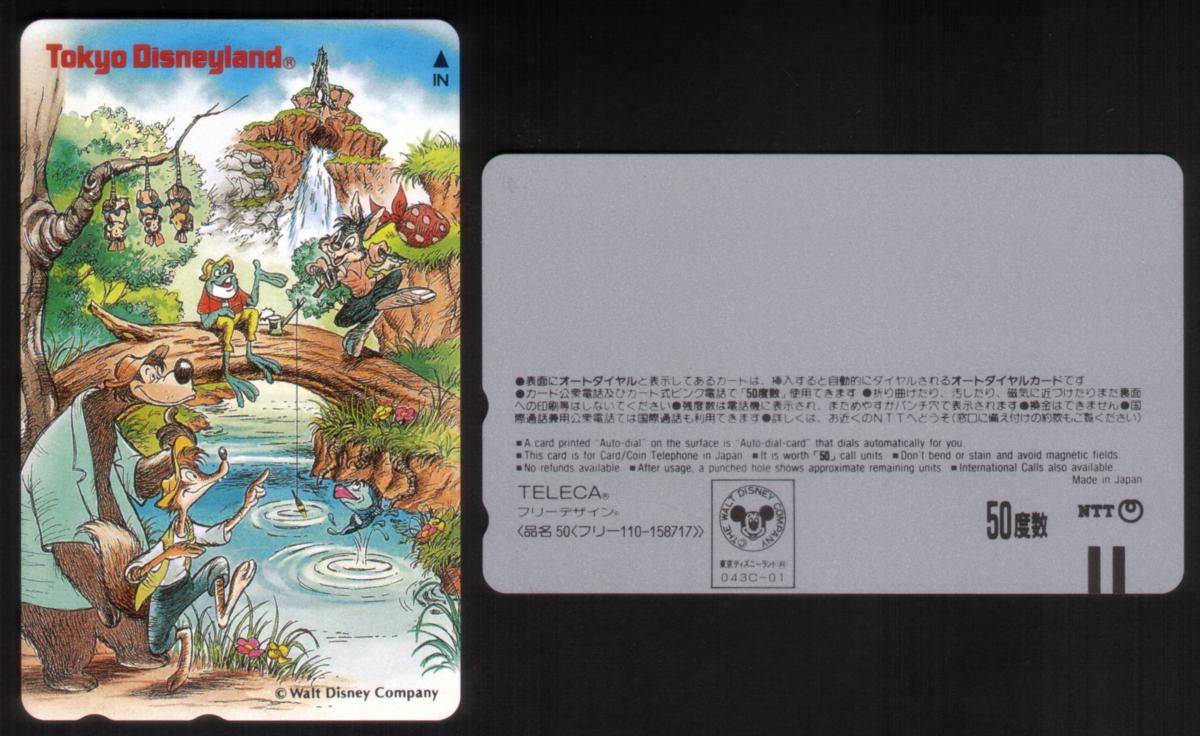 The card’s borders are clean with no additional graphics or text besides the necessary branding and identification details. The bright colors and iconic characters make this phone card a vibrant collectible item tied directly to Disney’s Tokyo Disneyland Splash Mountain attraction.