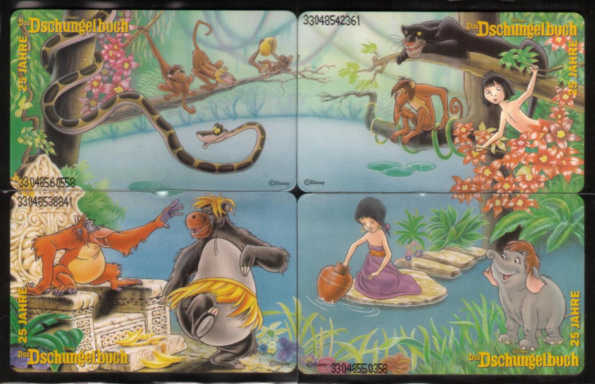 This stored value smart card was issued in Germany and is part of a set of four in a folder. The visual style closely matches classic Disney animation, capturing the playful and adventurous spirit of the original Jungle Book story. The card’s chip is embedded on the front, identifying it as a functional stored value card used for interactions requiring electronic value storage.