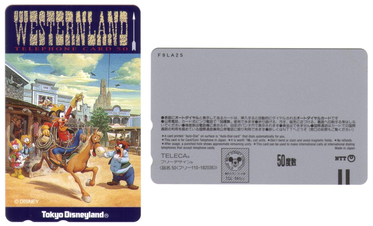 This collectible Disney card is associated with the theme of cowboy culture and the Westernland section of Tokyo Disneyland. It is presented in mint condition, without holes or damage. The combination of classic Disney characters and the Western motif makes this card a distinctive item for collectors interested in Disney memorabilia and Tokyo Disneyland souvenirs.