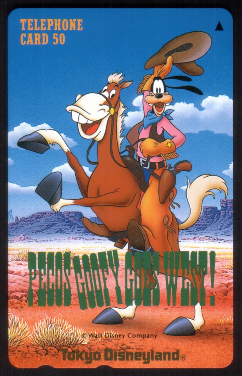 This phone card has strong ties to Disney and is a Japanese collectible related to the character Goofy. It captures the playful and adventurous spirit of Goofy in a Wild West setting, making it a unique Disney phone card collectible from Tokyo Disneyland.