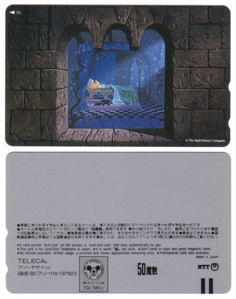 The card is from Japan, as indicated by the production information, and is in mint condition with no holes. The printed text includes the identifier “Disney Sleeping Beauty Concept Painting #137162” along with the source details. The overall size and quality of the card present it as a collectible designed for Disney art enthusiasts and collectors.