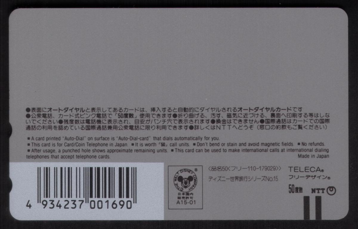 The card is part of the "Around the World #15 Disney Mickey & Friends New York & Twin Towers" series, issued in mint condition without holes in Japan by Disney Enterprises, Inc. It vividly celebrates Disney characters exploring a landmark global city, combining Americana and classic Disney charm.