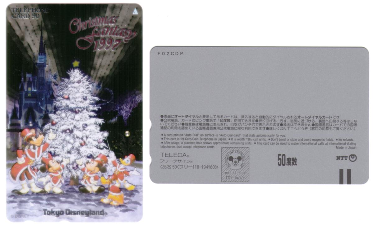Additional text on the card displays the number 194160 and the code J90N, connecting it to its official series and release details. The card is in mint condition and has no holes, highlighting its collectible quality. This card represents a distinctive piece from the 1997 Disney Christmas Fantasy collection issued in Japan.