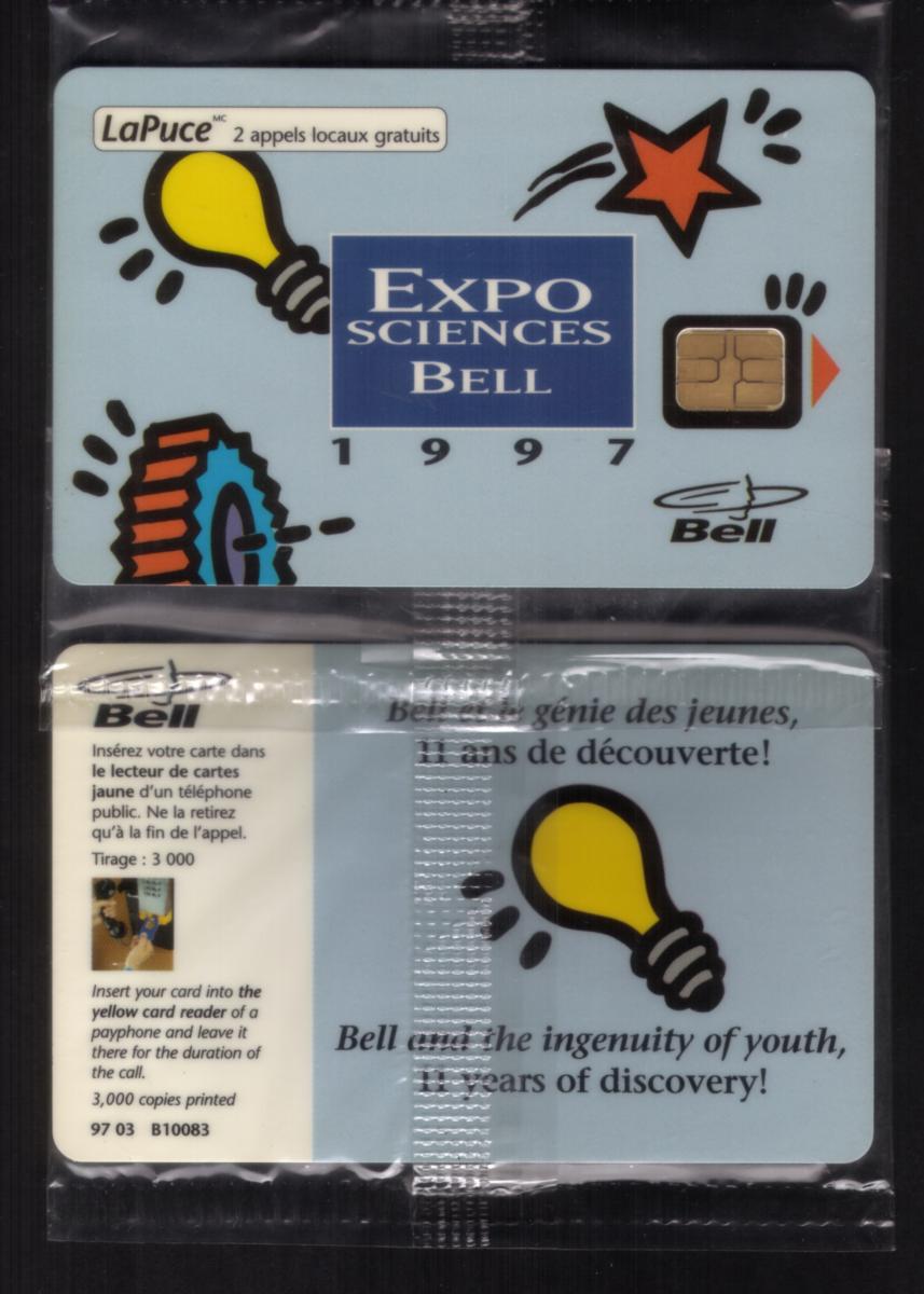 This Bell collectible card is sealed and in pristine condition, making it suitable for collectors interested in telecommunications and Canadian scientific promotional materials. It commemorates the 1997 Science Expo organized by Bell, focusing on the achievements and creativity of youth in the field of science and technology.
