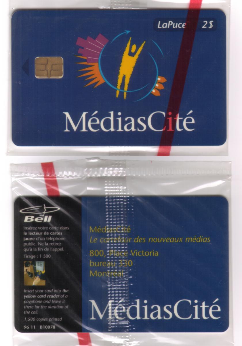 This card is sealed and maintained in mint condition, making it a collectible item for enthusiasts of Canadian phone cards and smart chip cards, especially those interested in telecom-themed designs linked to evolving media networks.