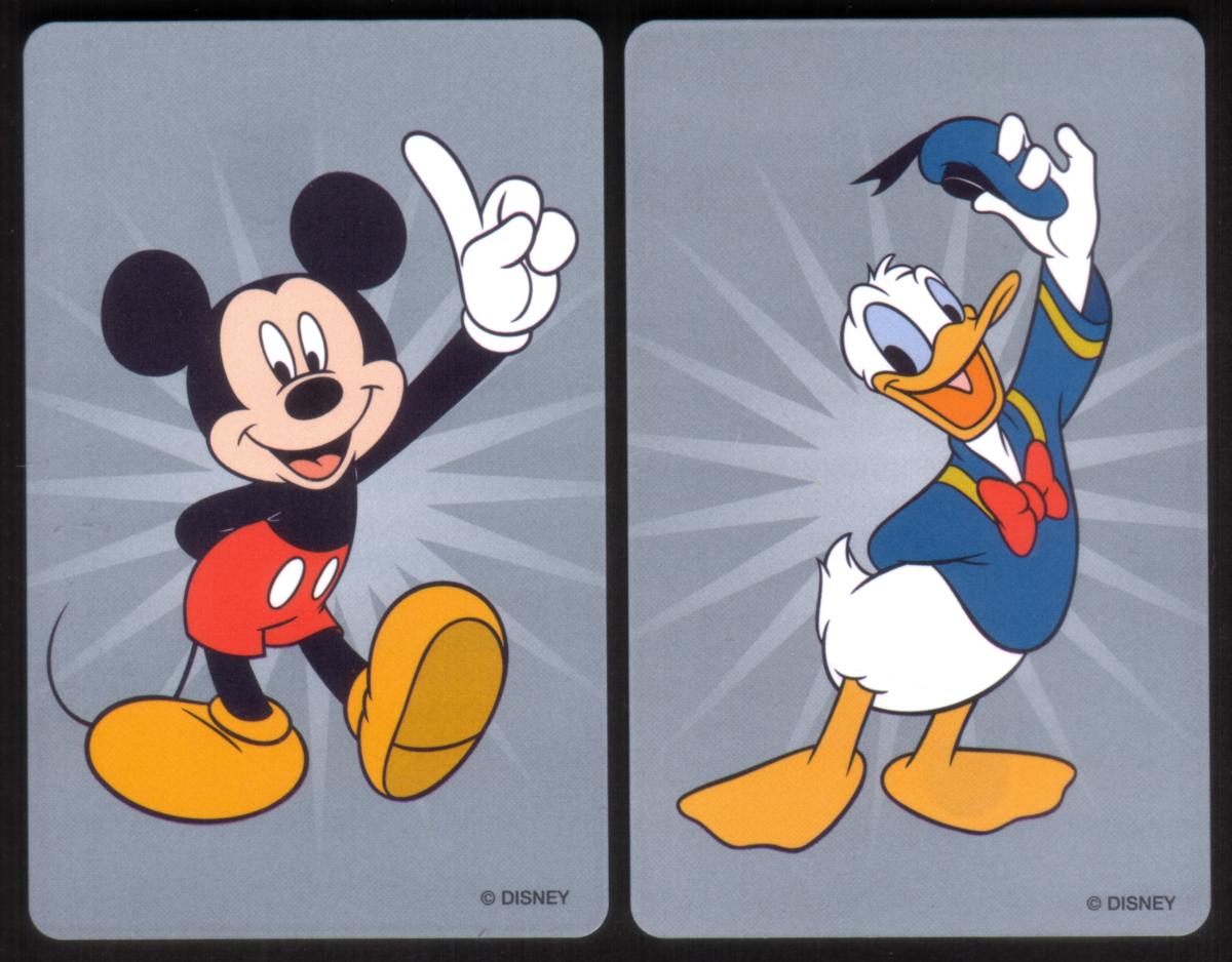 This collectible stored value smart card features Disney characters Mickey Mouse and Donald Duck. Both characters are prominently displayed in full color, capturing Mickey Mouse’s classic cheerful expression alongside Donald Duck’s distinctive sailor outfit and animated gesture. The design highlights the playful interaction between these two iconic Disney figures.