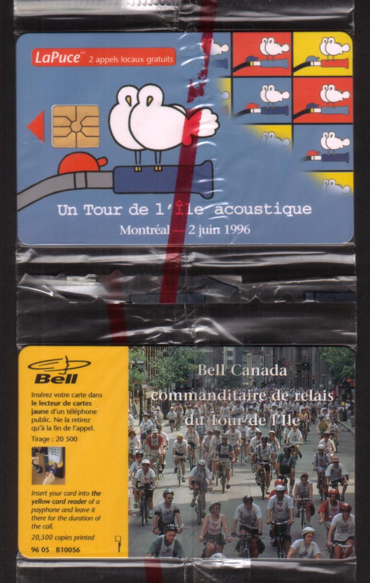 The card includes the text "A TPour of the Acoustic Island" and identifies itself as a stored value card with a $2 value. It also features the Bell: LaPuce logo, which is related to the Canadian telecommunications provider Bell. The card is sealed, emphasizing its collectible condition.