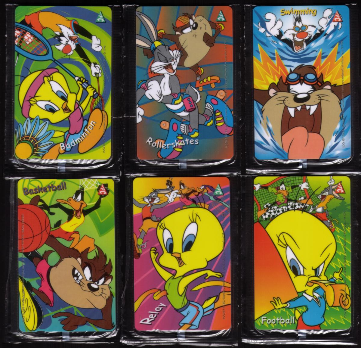 These collectible phone cards come sealed, verifying their completeness and untouched condition. The set is explicitly connected to Singapore, where it was issued, and provides a fun representation of sport through the lens of beloved cartoon characters. This combination of animated figures with athletic activities creates an engaging collection for enthusiasts of both Looney Tunes and sports memorabilia.