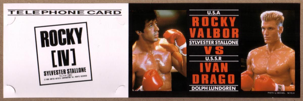 This card also comes with its original flyer card, adding to its collectible value. It is a mint condition item and part of the promotional material related to the Rocky IV movie. The combination of visual and textual elements makes this phone card a valuable piece for fans of Sylvester Stallone and collectors of movie memorabilia from the 1980s.