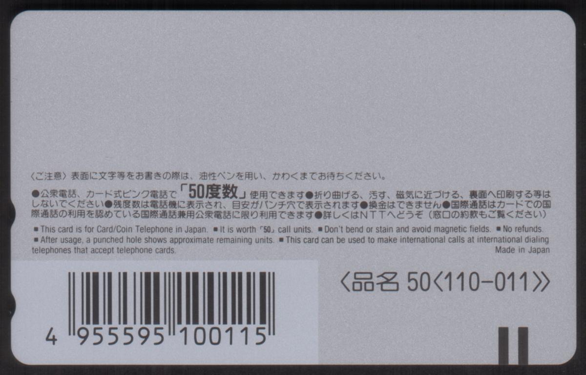 The card displays Japanese text in white at the bottom left corner. The overall design is simple and elegant, with a small black triangle in the top right corner. The card is in mint condition with no holes.