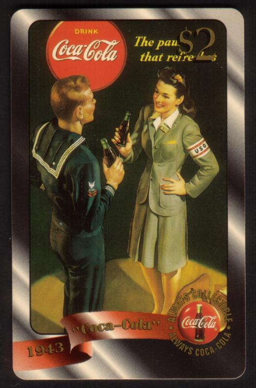 Coca-Cola '96 $2. WWII USO Woman & G.I. Coke Card #10 of 48 Gold Ed.