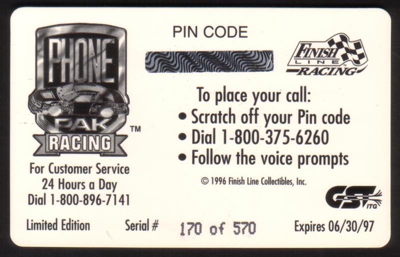 PhonePak 1996 $5. Ricky Craven (Kodiak)