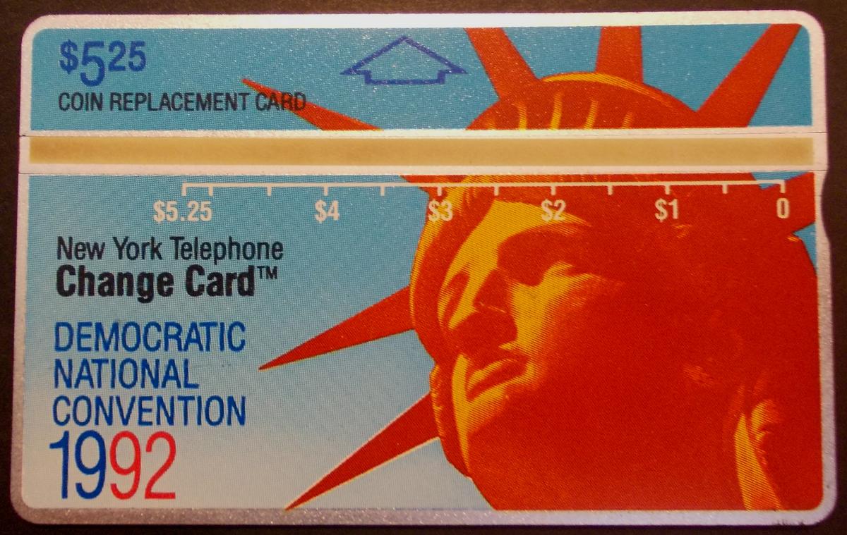 Overall, this card combines national symbols with telecommunications history, commemorating political events and American landmarks specifically in connection with the 1992 Democratic Convention and the Statue of Liberty’s imagery as a symbol of freedom and politics. The blend of American political iconography and the telephone card format makes it a notable piece for collectors interested in Americana, politics, and phone cards.