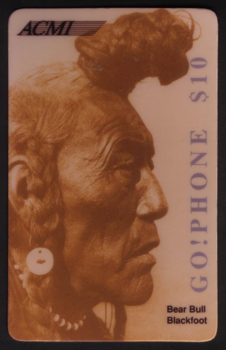 Overall, this card transcends its functional purpose to become a piece of educational art. As part of ACMI’s Indian Series, it reflects a commitment to preserving and celebrating Native American identity and legacy within popular culture. The emphasis on Bear Bull’s strong profile and cultural adornments pays respectful tribute to the resilience and pride of the Blackfoot people. Collectors of phone cards and enthusiasts of indigenous history will find this piece especially valuable for its evocative imagery and historical significance.