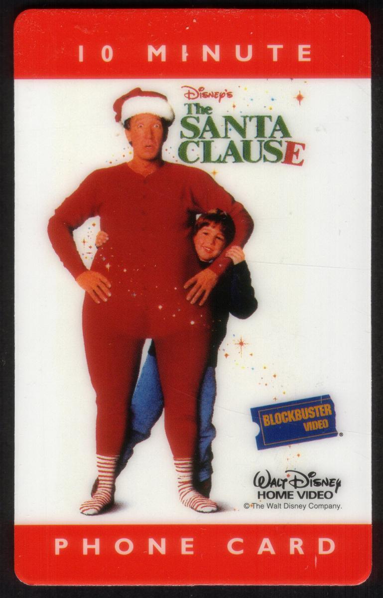 Overall, the card combines elements of entertainment, films, and holiday spirit with its direct connection to the well-known Christmas movie starring Tim Allen. The colors, characters, and text make it clear that this phone card commemorates *The Santa Clause* as a seasonal classic film.