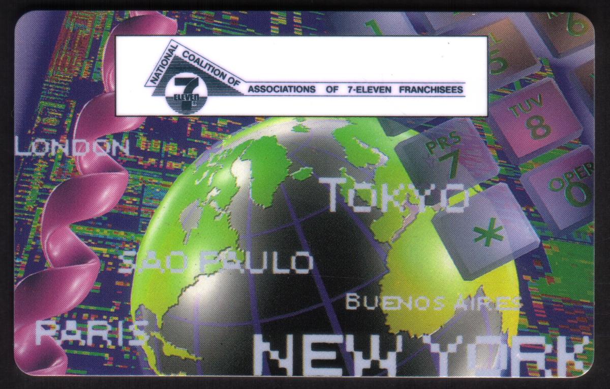 Keywords: Show Cards, expos, telecard events, telephone keypads, globes, world maps, earth, telephone cords, telephones on phonecards, Paris, London, Sao Paulo, Tokyo, operator button, logos, trademarks, 7-11, 7/11, seven-eleven, seven eleven, Peoples Telephone Co.