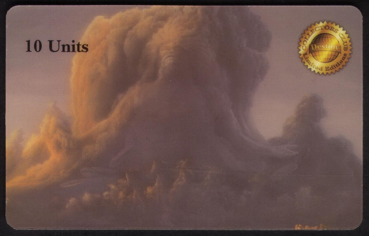 This phone card beautifully weaves together themes of Native American art, spirituality, animals, and nature within a single scenic composition. The cloud imagery, with its delicate shapes reminiscent of horses and other animals, reflects a deep cultural respect for these creatures as spiritual guides and symbols. The subtle interplay of color and form enhances the mystical quality attributed to clouds in many Native American traditions, where they are often seen as vessels of spiritual blessings or messages. Overall, the “Blessing of The Spirit” phone card is a stunning fusion of art, cultural symbolism, and natural beauty, making it a cherished collectible.