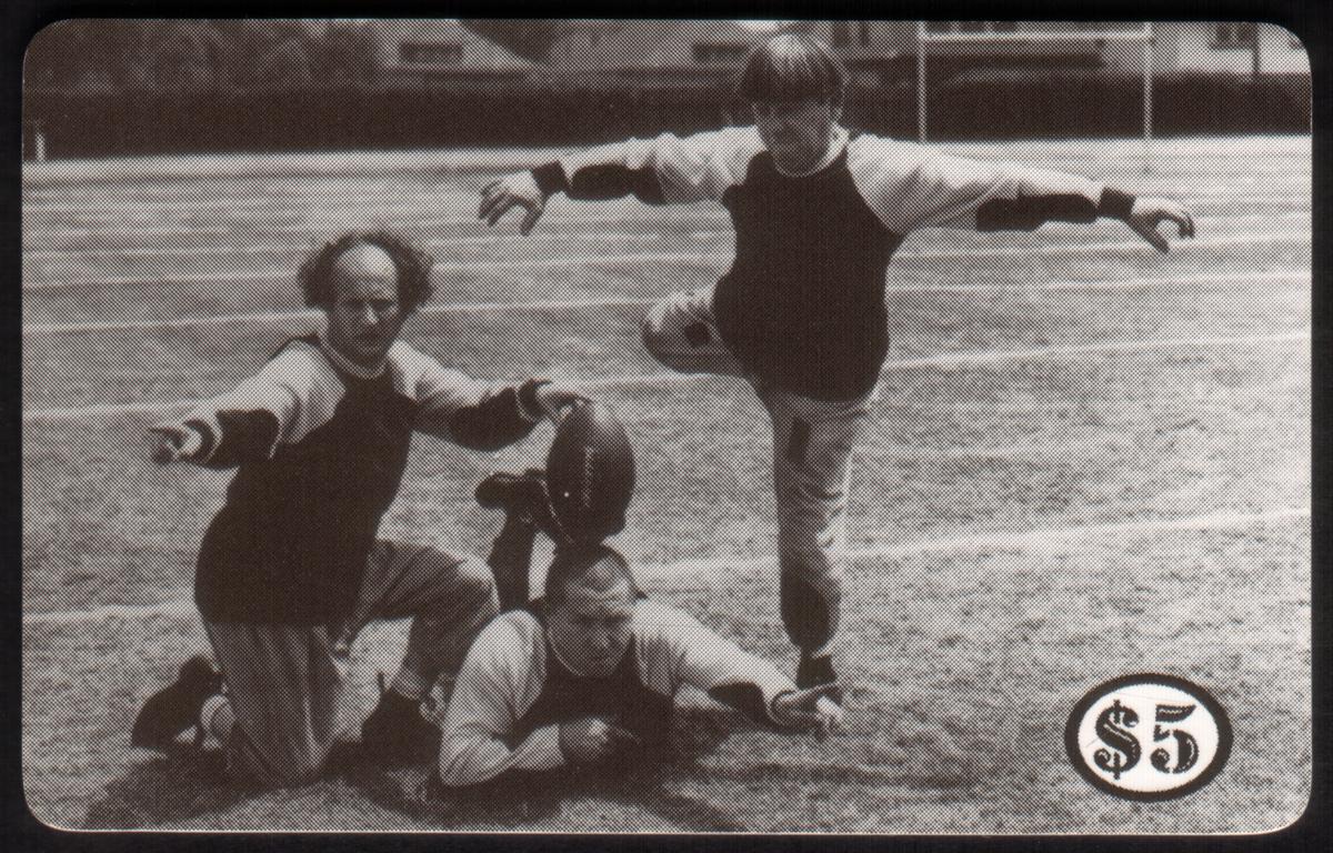 $5. The Three Stooges: 'Football Follies' Kicking B&W Photo SPECIMEN
